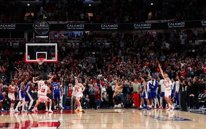 决胜时刻双方陷入得分荒,多次进攻无果后,公牛手握最后一攻良机——吉迪精准传导,尼克拉-武切维奇接球毫不犹豫,三分出手稳稳命中,完成准绝杀!
