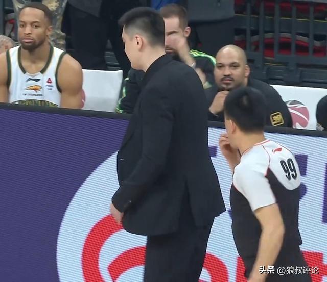 第四节剩下6分21秒,姜宇星和陈盈骏对位回合爆发争议,杨鸣不满吹罚连续对着99号裁判输出领到技术犯规。