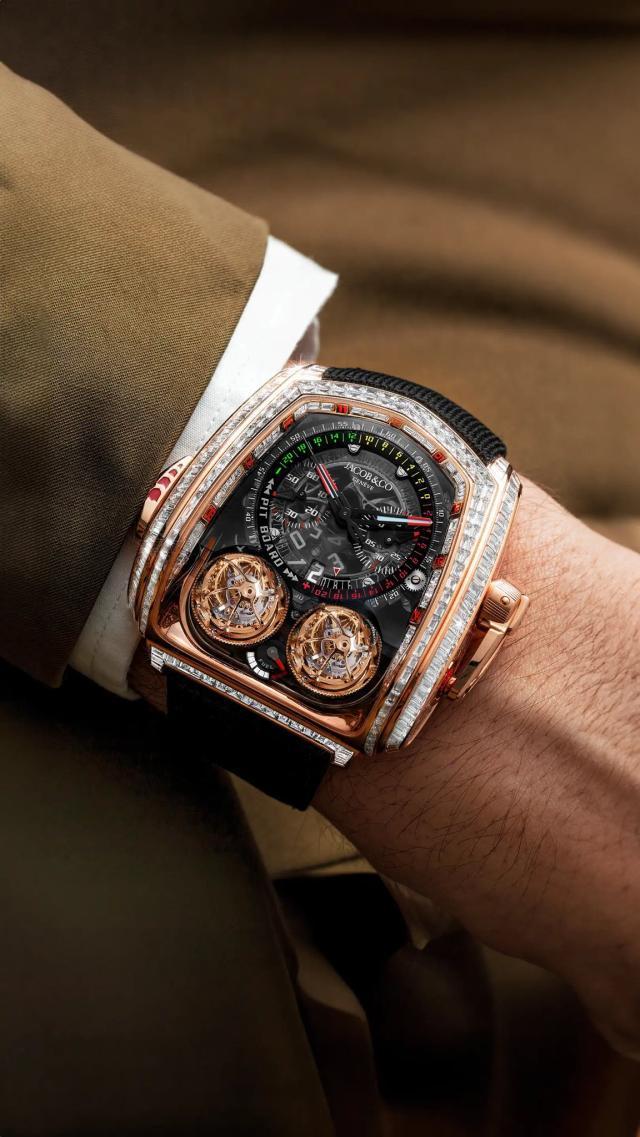 谈到财富话题,摩根突然对C罗左腕闪闪发光的奢华腕表产生兴趣,这款由Jacob&Co与豪车品牌布加迪联合推出的W16涡轮增压引擎腕表,售价高到130万美元,限量发售126枚,摩根艳羡之情溢于言表:“说实话,我不穷了,但这个真是很贵。”他随后询问早已实现财富自由的C罗:“买过最贵的东西是啥?”
