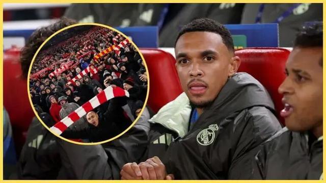 今年夏天,这位利物浦青训毕业生选择离开母队加盟皇家马德里。阿诺德的离队引发了利物浦球迷的强烈愤慨,许多球迷对这位边后卫几乎免费离队的行为感到愤怒。在周二晚上两队交锋前,位于安菲尔德附近的阿诺德壁画——上面画着这位后卫,并配有“我只是一个来自利物浦的普通男孩,梦想成真了”的字样——被人恶意涂鸦,写上了“adios el rata”(西班牙语意为“再见,老鼠”)。