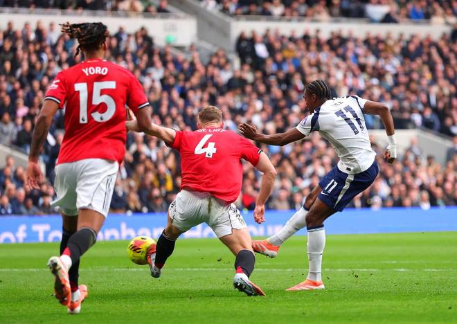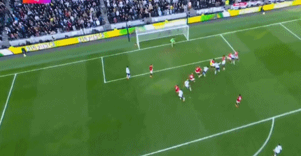 第32分钟,热刺后防线一片混乱,迪亚洛禁区右侧传中,姆伯莫后点甩头攻门直挂死角,维卡里奥鞭长莫及,曼联打破僵局,1-0!