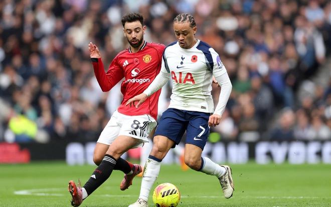 第69分钟,迪亚洛右路长传前场,B费后排插上不停球垫射没压住打飞;随后阿莫林进行调整,约罗、乌加特和芒特一并替补出场;第75分钟,芒特闪开防守一脚贴地斜塞打出了热刺防守,但谢什科面对大好机会停球之后却被对手抢断。弗兰克也立马换上了特尔加强进攻,这次调整也立马起到了效果;第84分钟,奥多贝尔左侧分球,乌多基立马跟进横传,特尔倚住德赫里特防守左脚停球顺势转身抽射扳平比分,1:1!