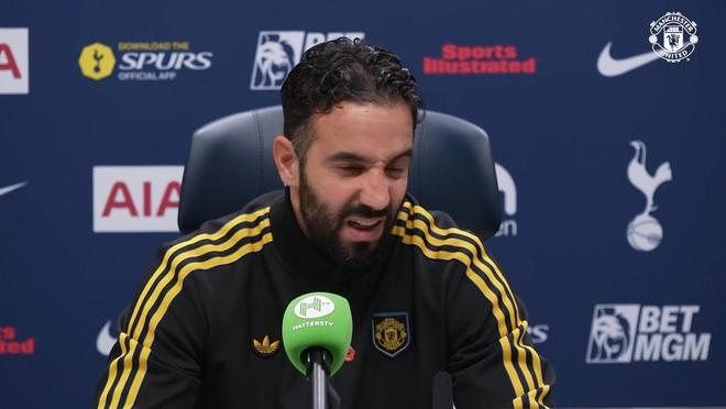 率队在英超第11轮客场2-2战平托特纳姆热刺之后,曼联主教练阿莫林出席了新闻发布会。