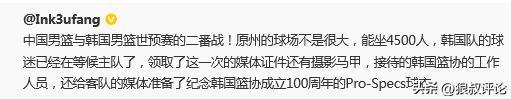 根据前方媒体人“Ink3ufang”的报道,中国男篮与韩国男篮世预赛的二番战!原州的球场不是很大,能坐4500人。